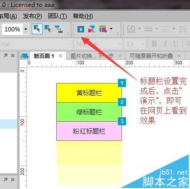 接著,對(duì)綠標(biāo)題欄、粉紅標(biāo)題欄進(jìn)行同樣的操作。標(biāo)題欄設(shè)置完成后,點(diǎn)擊演示鍵,即可查看效果。