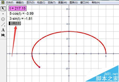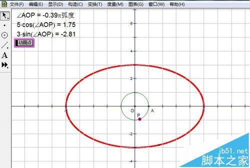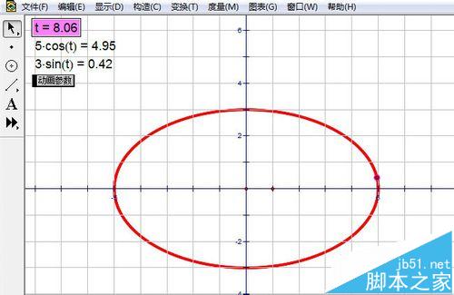 7、當參數的值達到360時,就畫出一個封閉的圖形,顯然它是橢圓。這種畫法的關鍵是建立一個參數,然后畫動點,最后建立參數動畫,而不是點動畫。