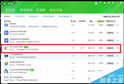 6、被其他的管理軟件禁止后,打不開ug,只需要設(shè)置成開機自啟動,并且重啟電腦即可