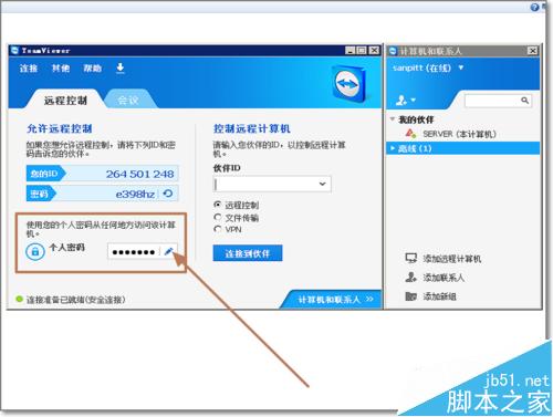 8、另外在主界面如圖所示的地方,也可以進行個人密碼修改(固定密碼),即無人值守訪問,也是遠程訪問服務器或家中電腦的前提,所以本經驗在前面的步驟軟件就進入了這個設置界面。