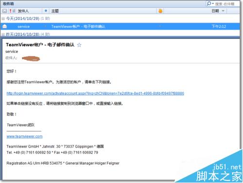 5、注冊TeamViewer帳戶后,進入你的注冊郵件,TeamViewer官會發一封確認鏈接地址,激活帳戶。這也是以后找回密碼所需要的郵件。