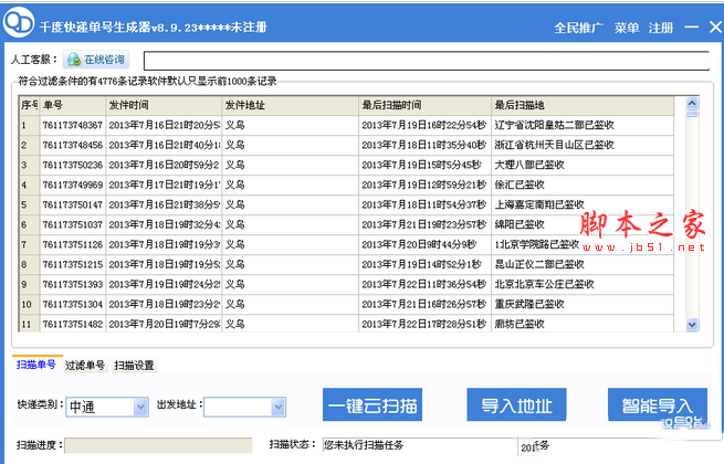 3. 快遞單號(hào)生成器軟件獨(dú)創(chuàng)智能掃描能智能分析單號(hào)范圍進(jìn)行掃描。