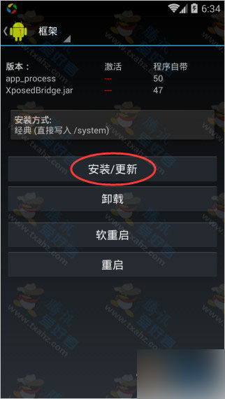 2、打開Xposed 安裝器,看到框架提示“未激活”;不管它 直接點擊框架安裝。如下圖: