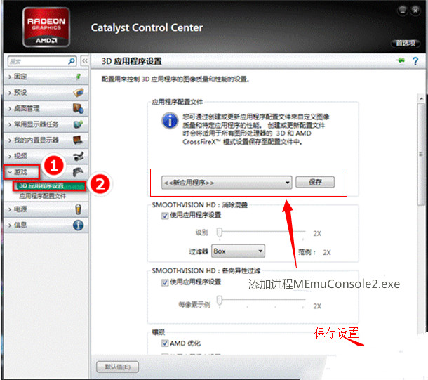 (可選步驟)管理3D設置 > 程序設置 > 添加進程 MEmuConsole2.exe