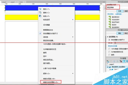 右鍵單擊“標題2”,點擊“轉換為動態面板”,將動態面板命名為“固定菜單”,在元件屬性與樣式中點擊“固定到瀏覽器”勾選“固定到瀏覽器窗口”,完成后隱藏動態面板。