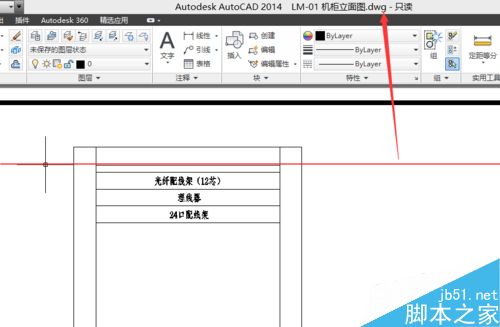 2、用Cad打開后,標識和引線不顯示以及機柜的安裝位置(U數)不顯示。同時打開同一個文件時,有一個顯示是只讀,沒有寫權限。如下圖:
