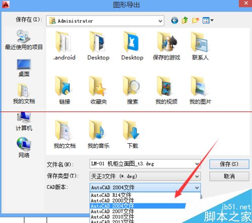 6、在CAD版本中可以選擇打開該圖紙的CAD軟件版本或者說是圖紙保存格式有2004、2007、2010、2013等格式,選擇適用的CAD版本即可。