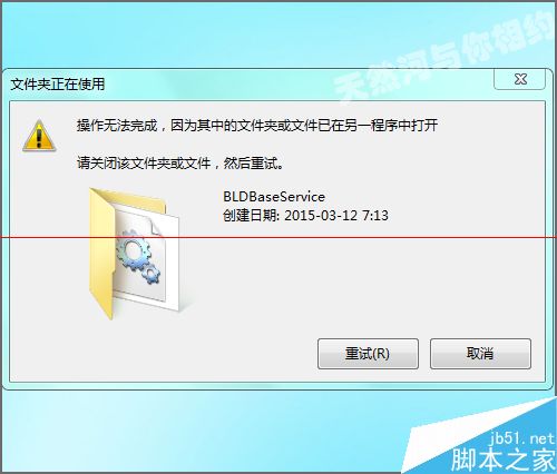 9、有的時候,當我們移動或者是要刪除某一個文件的時候,當點擊之后,也許會出現這樣的提示:操作無法完成,因為其中的文件夾或文件已在另一程序中開。請關閉該文件夾或文件,然后重試。如果遇到這樣的情況的話,就箕是把其它打開的文件進行關閉之后,仍然會出現這樣的重試提示。