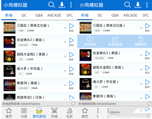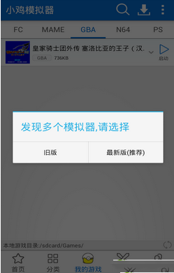 現在的PSP、GBA、SFC、MD、FC、GBC、DC等模擬器均已更改為內置,若有安裝舊版小雞模擬器助手,可選擇從舊版啟動,方便兼容舊版存檔