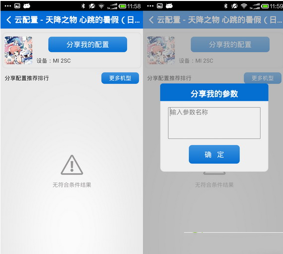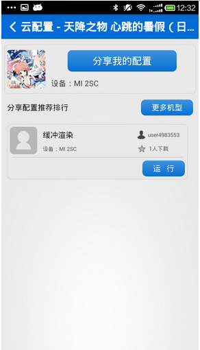 ☆使用步驟:啟動游戲-->設置PSP游戲參數配置-->退出游戲后返回到云配置分享界面-->點擊【分享我的配置】-->填寫參數后點擊【確定】-->分享成功后點擊【更多機型】-->從列表中點擊【運行】