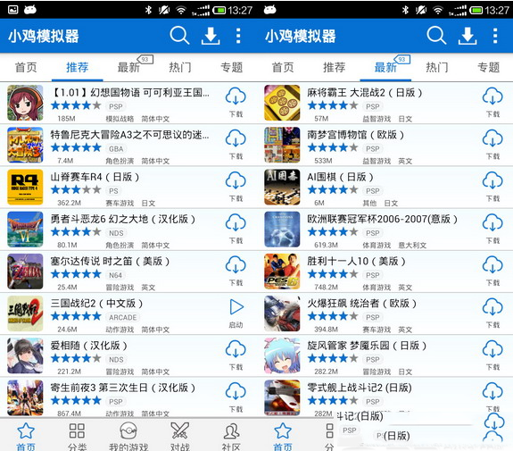 11、在首次啟動一種平臺的游戲前,小雞模擬器會提示下載及安裝該種平臺之對應模擬器(PSP、GBA、SFC、MD、FC、GBC、DC)除外。