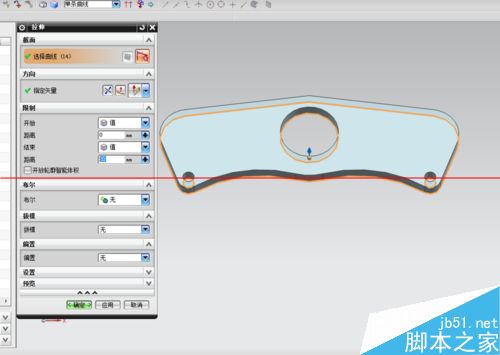 7、彈出【拉伸】對話框。選擇曲線(全選),距離自定義,其他設(shè)置默認(rèn)。