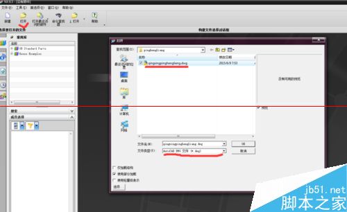 3、點(diǎn)擊【打開】。找到保存的cad文件,【文件類型】選擇『*.dwg』。如圖所示,點(diǎn)擊【ok】
