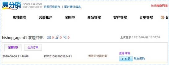 5.登錄易分銷管理平臺,在采購單內查看生成的淘寶訂單。如圖:
