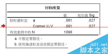10、最后一個表格,輸出的是phi值和V值,兩個都是代表兩個變量之間的關系的緊密度的,數值小于0.1說明關系不緊密,即性別與周末讀物的選擇沒有明顯的關系,這個結論和上面的卡方檢驗有出入,所以我們需要進一步進行兩兩比較。