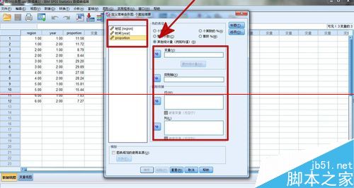 4、在這個對話框中,在上方選擇“簡單統計量”。分別把左邊的字段對應地選到右邊的變量、類別軸、行(列)
