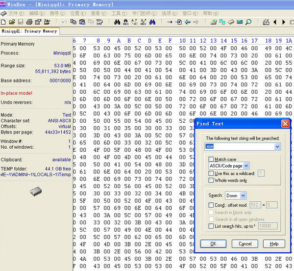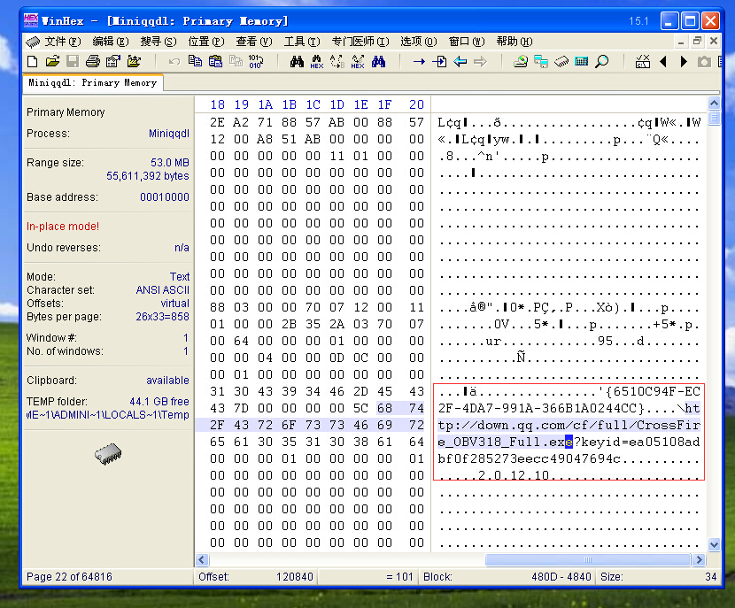 我們先用 WinHex 打開 MiniQQDL.exe 這個進程,進程PID是3340