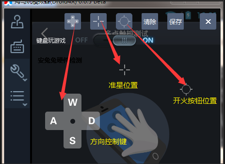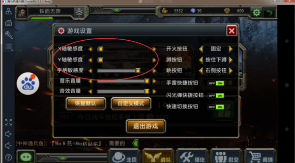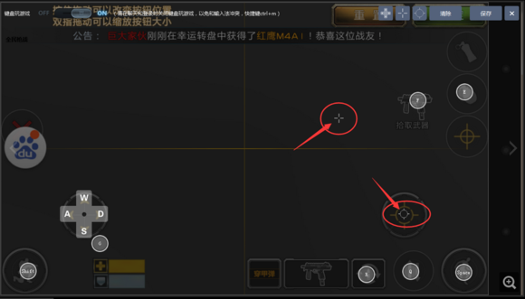 4、開火鍵位,在《全民槍戰》開火按鈕的中心;準星鍵位,在開火按鈕的外面。記住一定要在外面,否則按下了右鍵以后,會一直開火。