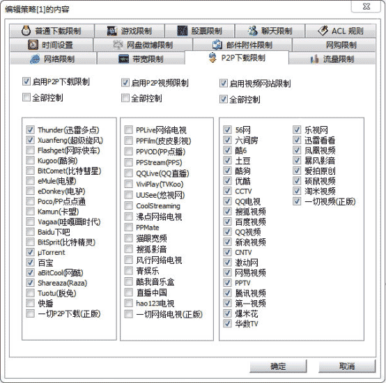 同時,聚生網管系統還可以有效禁止P2P下載、禁止P2P上傳等,如下圖所示: