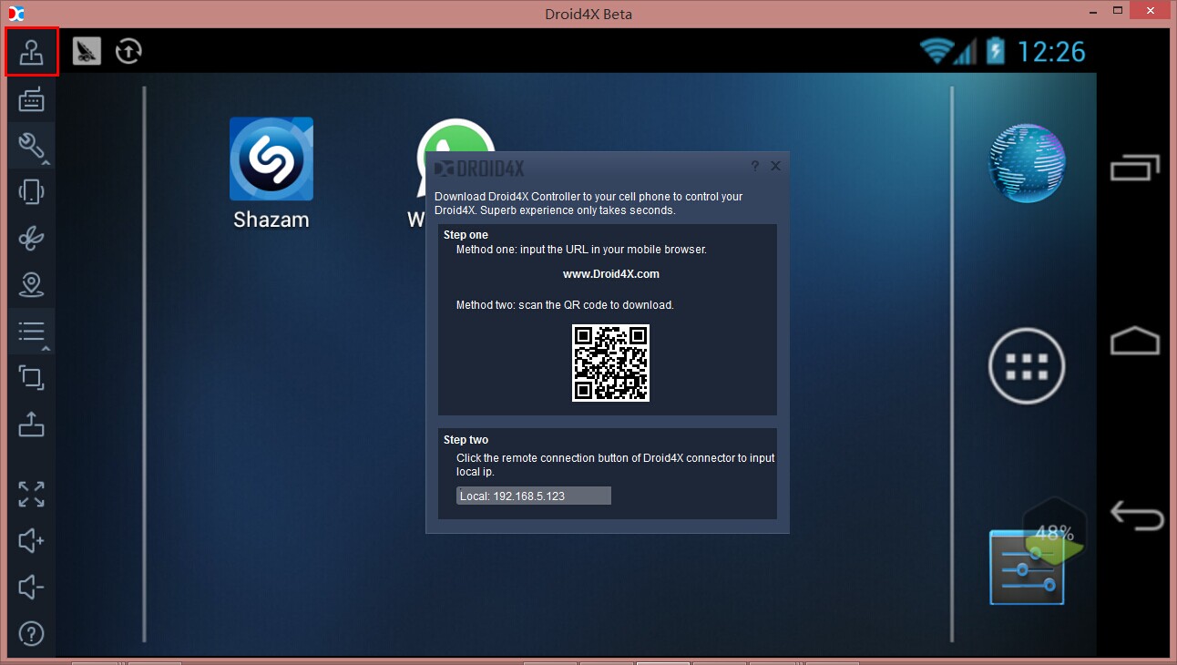 在連接手柄頁面輸入Droid4X模擬器上顯示的IP地址,點擊連接按鈕。