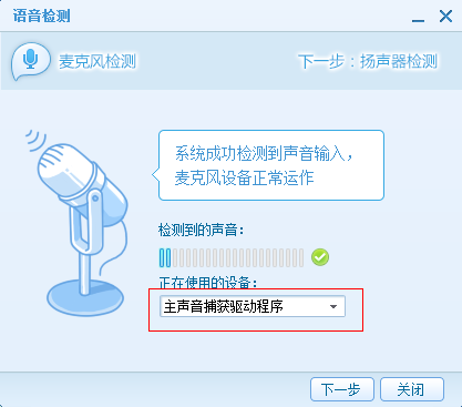 如果QT顯示系統成功檢測到聲音輸入,選擇下一步。