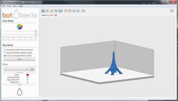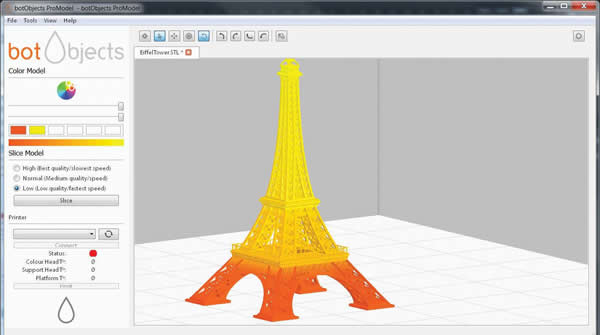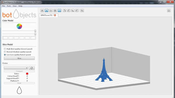 在完成拆分,為模型上色之后,連接到打印機,設置打印機的溫度,然后打開混合器,就可以進行打印了。只要點擊屏幕左下角的打印鍵就可以了。