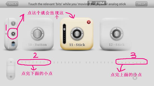 這時我們1鍵就完成了,再接著2鍵,我們就點一下上面第二個按鈕,然后再按手柄2鍵看一下下面哪個小點有反應(一般都在1鍵小點的旁邊),看清哪個有反應之后我們就按住2鍵,方法和1鍵一樣,依次把所有按鍵設置完(除方向鍵和搖桿外)。如果出現點擊下一個按鈕后按手柄上的鍵老是回到上一個按鈕的情況,請點擊按鈕右上角的紅叉刪除以前設置的按鈕再重新添加按鈕。
