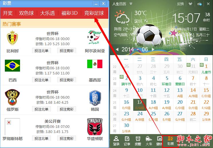在人生日歷主界面的應(yīng)用欄,打開“彩票”選擇競(jìng)彩足球,就能看到世界杯的當(dāng)天可投注賽事,選擇自己想要投注的比賽,就可直接點(diǎn)擊進(jìn)去參與競(jìng)彩了。