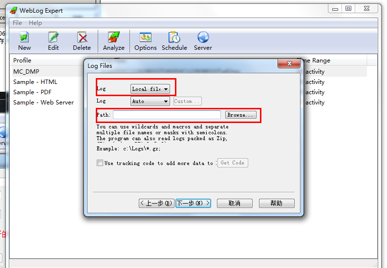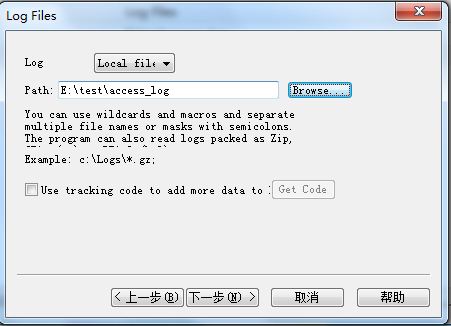 Log :選擇日志文件文件類型,local file 文件,我們可以把日志文件拷貝到本地進(jìn)行選擇。