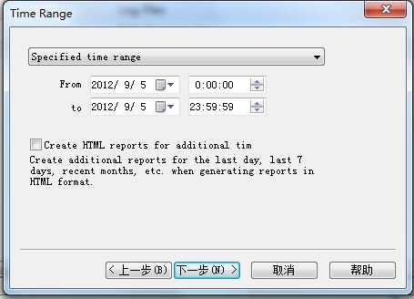 這一步,我們來(lái)選擇分析log的時(shí)間,假如,我們的日志文件是記錄最近10天的日志,但我只想分析最近一周的日志信息。那么,可以在這里調(diào)整。