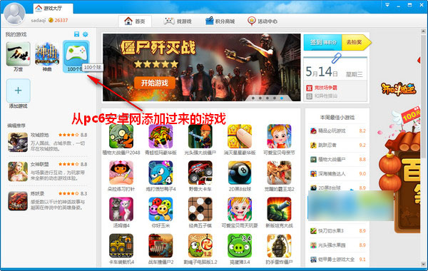這樣360游戲大廳就添加游戲成功了你所添加的游戲在我的游戲中顯示。