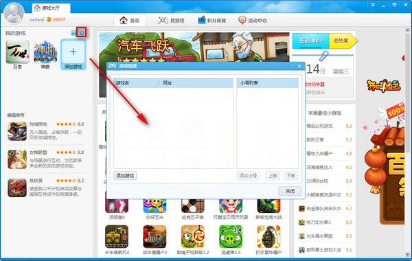 在游戲管理界面點(diǎn)擊《添加游戲》然后再輸入游戲名稱和網(wǎng)址最后點(diǎn)擊《確定》。