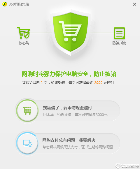 網購先賠服務是360安全中心為網購用戶提供的一道貼心安全保障。在您進行網絡購物時,如果因為360安全衛士未能及時攔截釣魚網站或網購木馬,從而導致您遭受財產損失,