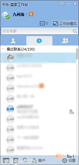 千牛有2種模式,旺旺模式和工作臺模式,旺旺模式就是界面和旺旺一樣的樣子,工作臺模式就是類似將所有的功能都集成到一個桌面上。