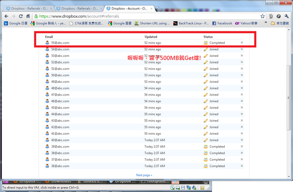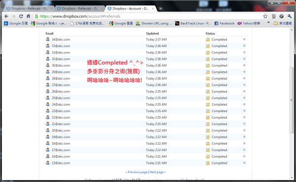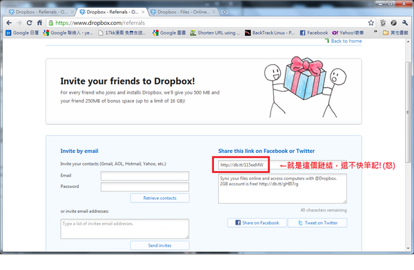 自己DIY獲得16G的dropbox好友邀請容量獎勵