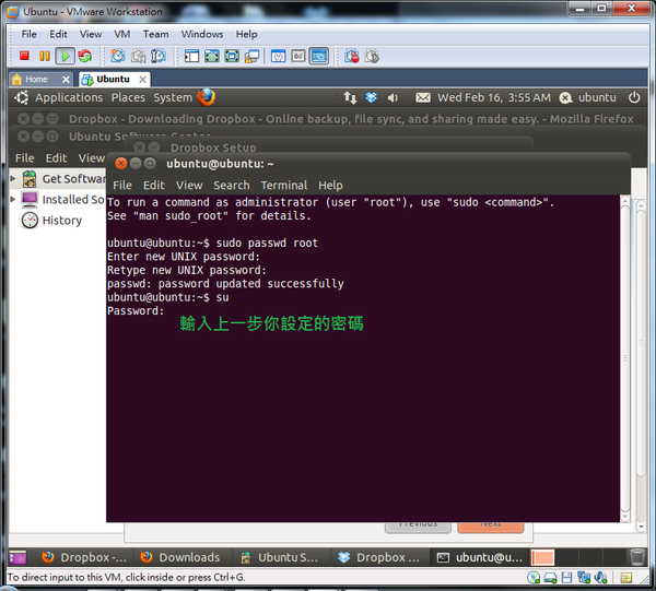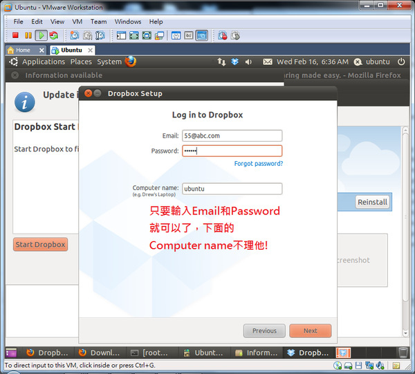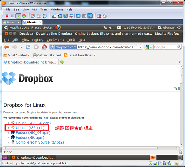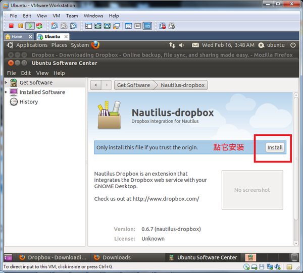 4. 在VMware完成第一次下載Dropbox及安裝程序。