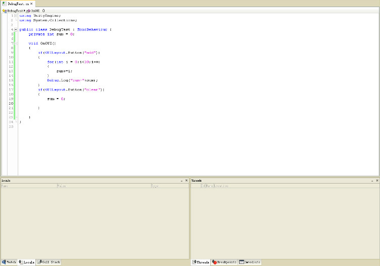 斷點調試功能可謂是程序員必備的功能了。Unity3D支持編寫js和c#腳本,但很多人可能不知道,其實Unity3D也能對程序進行斷點調試的。不過這個斷點調試功能只限于使用Unity3D自帶的MonoDevelop編輯器。而用Visual Studio是不行的。聽說有個叫做UnityVS的東西可以使用VS對Unity進行斷點Debug,不過沒試過。