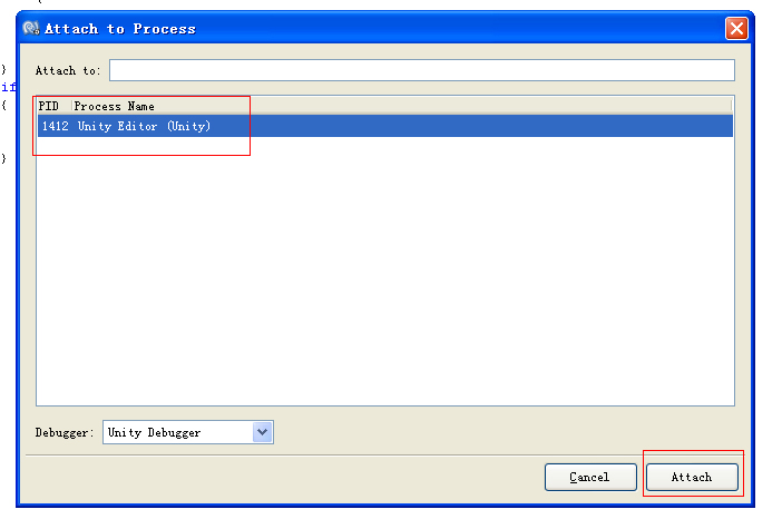 然后選擇Unity的進程,點擊Attach按鈕。