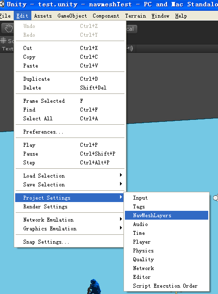 在Edit下拉列表,選擇Project——NavMeshLayers