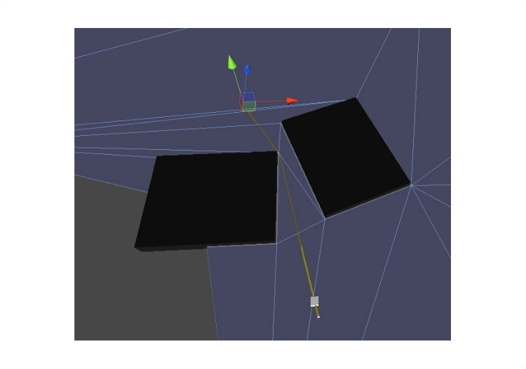 移動出來看看,這個就是我新生成的NavMesh了,其實這個東西純粹是為了讓大家看清楚才顯示出來的,沒什么實際意義的。