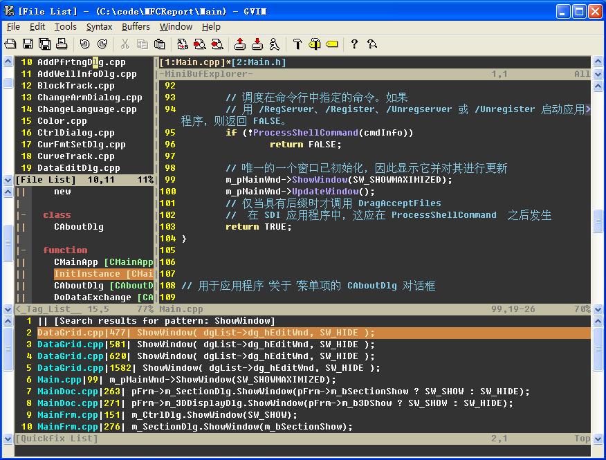 其中左上是netrw窗口(瀏覽文件),左下是TagList窗口,再次輸入"wm"時(shí)這兩個(gè)窗口會(huì)關(guān)閉。