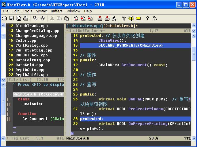 用gvim打開(kāi)代碼文件,normal狀態(tài)下輸入命令"wm",窗口如下