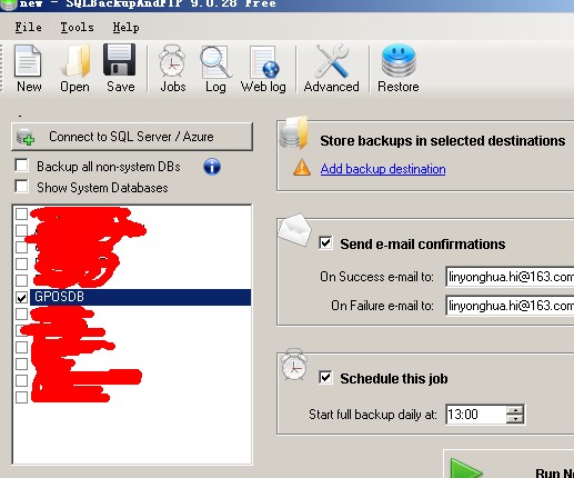 SQLBackupAndFTP這個工具主要就是自動備份數據庫,一鍵還原數據庫,發送備份數據庫日志報告到郵箱,自動壓縮備份好的數據庫,并且定期執行數據庫備份任務,取代SSMS的維護計劃,上傳數據庫備份文件到FTP服務器、其他網絡硬盤等