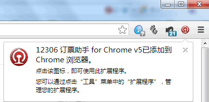 下載附件中提到的搶票助手插件,這里以Chrome瀏覽器為例(插件已經支持火狐、Chrome、搜狗、360、傲游、獵豹等主流瀏覽器)。