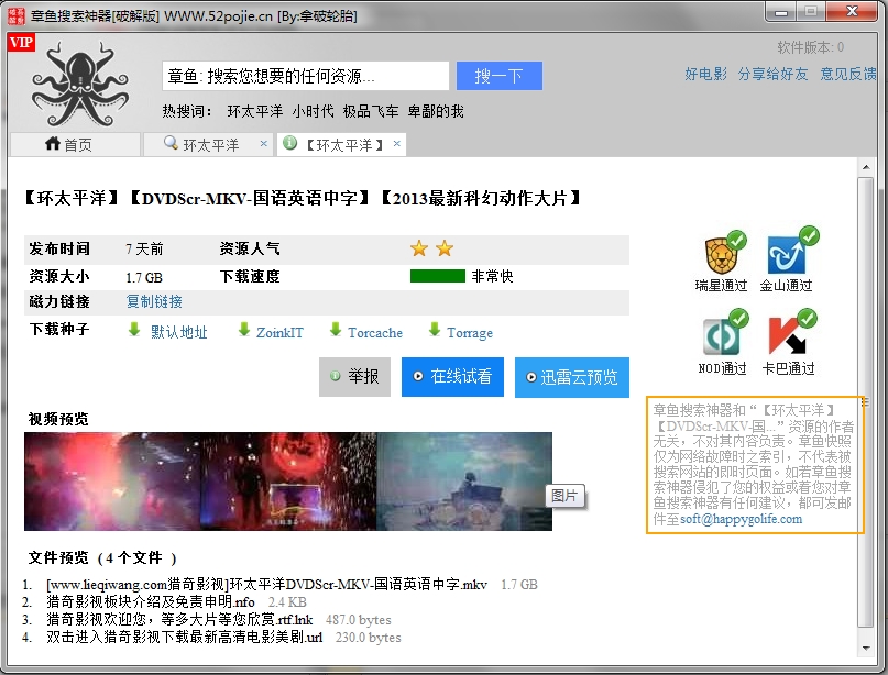 這幾天都在用章魚搜索這個東東看大片,乘著下班時間趕緊的下載了幾天電影帶回家慢慢欣賞,順便在這里給大家分享一下章魚搜索下載種子文件的方法,希望對大家有幫助哦!