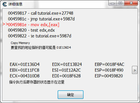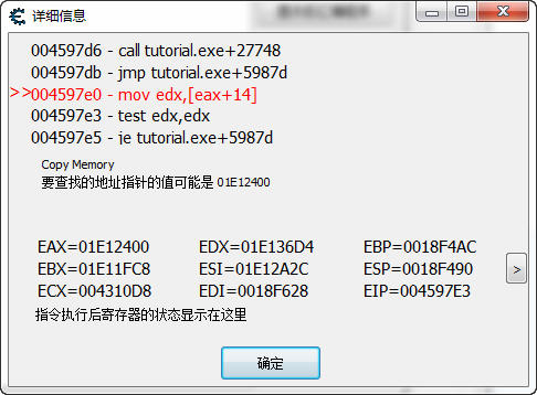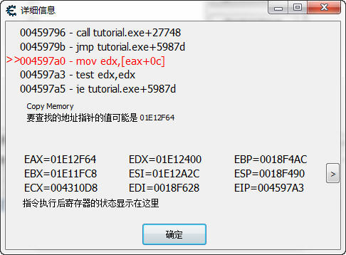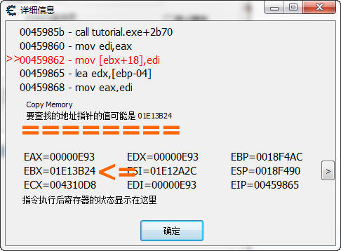 您會發現顯示的竟然是 Tutorial.exe+60C34 而不是 00460c34 這是為什么呢?
