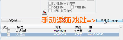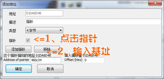 但是在某些情況下游戲的起始地址并不是從00400000開始的,或者說每次啟動申請的地址都不相同;那么就不能用 00460c34 來添加指針了,真正科學添加指針的方法是:
