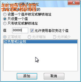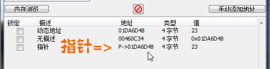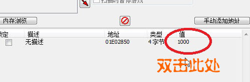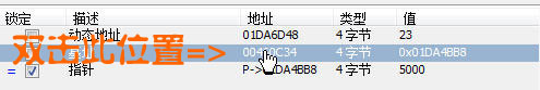 只有1個結果了,這個就是我們要找的內存地址,雙擊將其加入到地址欄
