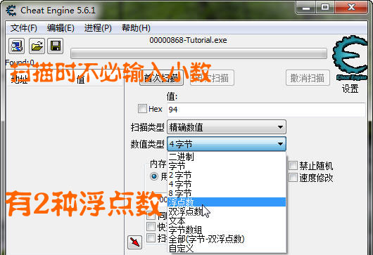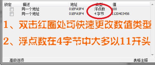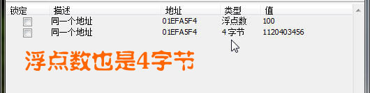 浮點數的長度是4字節,使用4字節也可搜索到浮點數,但需要使用模糊搜索。