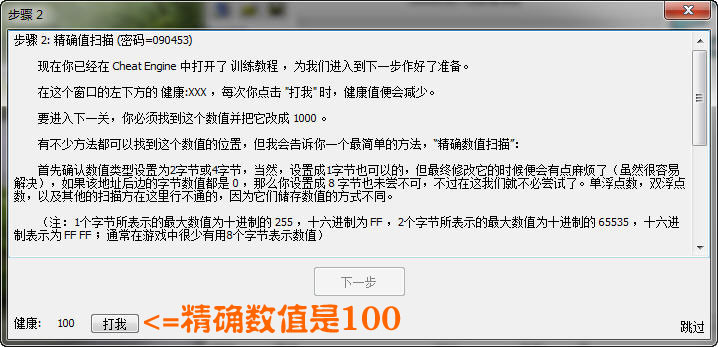 按下一步進入教程第二關,需要掃描的精確數值是100